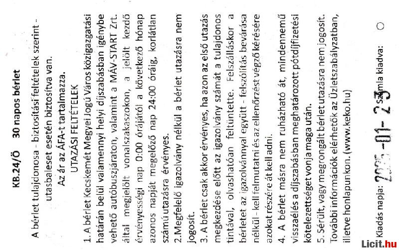 30 Napos Bérlet 2025 Január | Termékkód: 1062364344 |