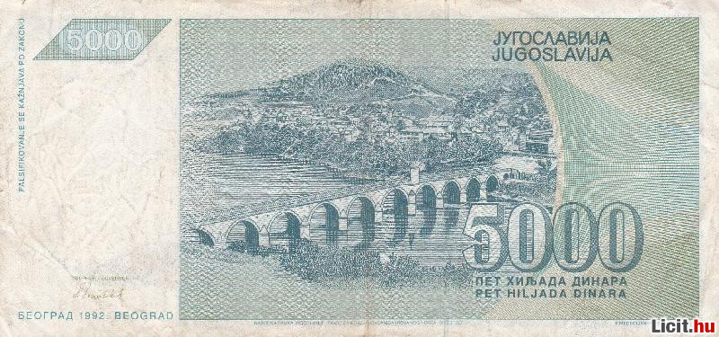| 5.000 Dinár 1992 Jugoszlávia | Termékkód: 1062367692 |