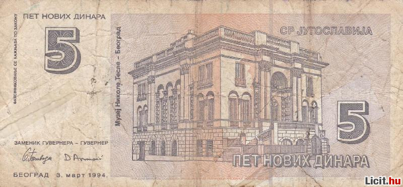 | 5 Dinár 1994 Jugoszlávia | Termékkód: 1062367534 |