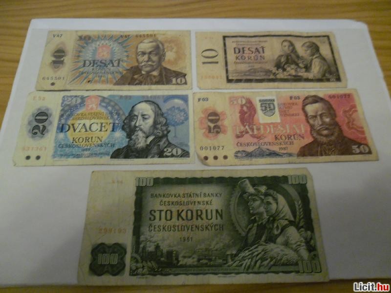 Eladó a képeken látható 4 db csehszlovák bankjegy (50 koronás bankjegy kivételével). Használtak, de nem tépettek, nem hiányosak.