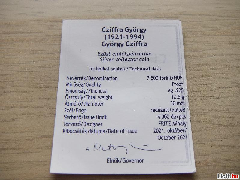 | Czifra György Ezüst Emlékérem 2021 + Tanúsítvány | Termékkód: 1062372528 |