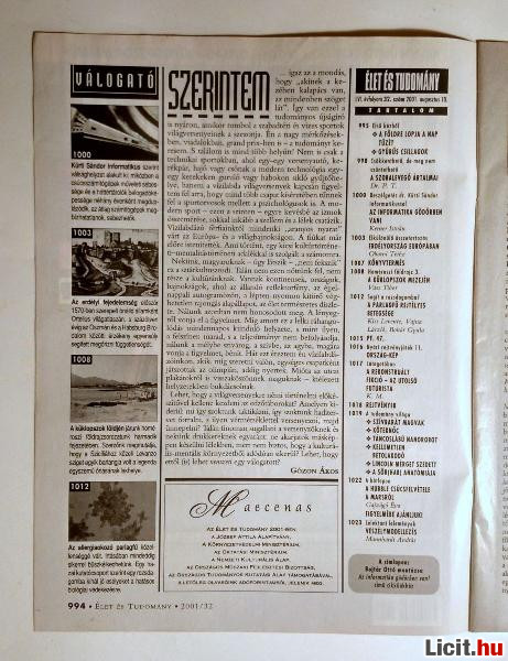 | Élet és Tudomány 2001/32 (8kép+tartalom) | Termékkód: 1062366275 |