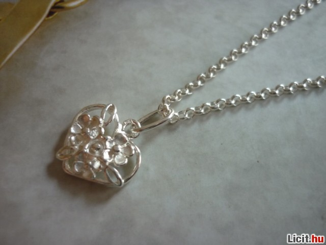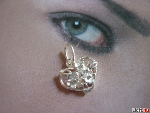 925-ös,sterling ezüst medál,szives-virágos mintával.