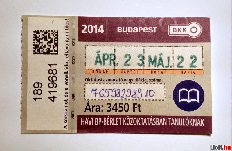 | Havi Bp-Bérlet Közöktatásban Tanulóknak 2014 Április (2képpel) | Termékkód: 1062371959 |