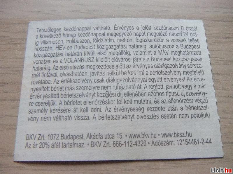 Havi Bérlet 2010 Április | Termékkód: 1062364551 |