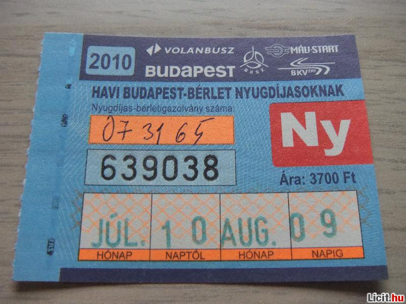Havi Bérlet 2010 Július | Termékkód: 1062364558 |