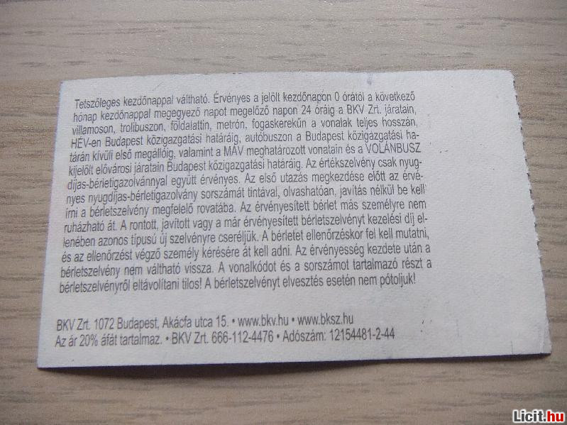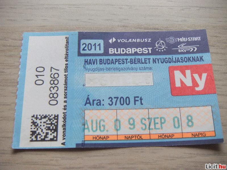 Havi Bérlet 2011 Augusztus | Termékkód: 1062364607 |