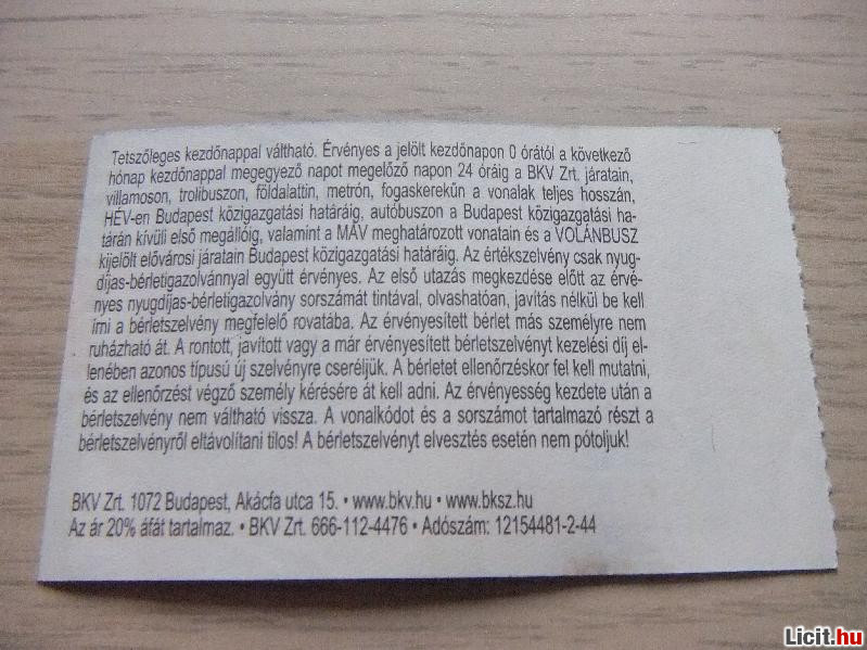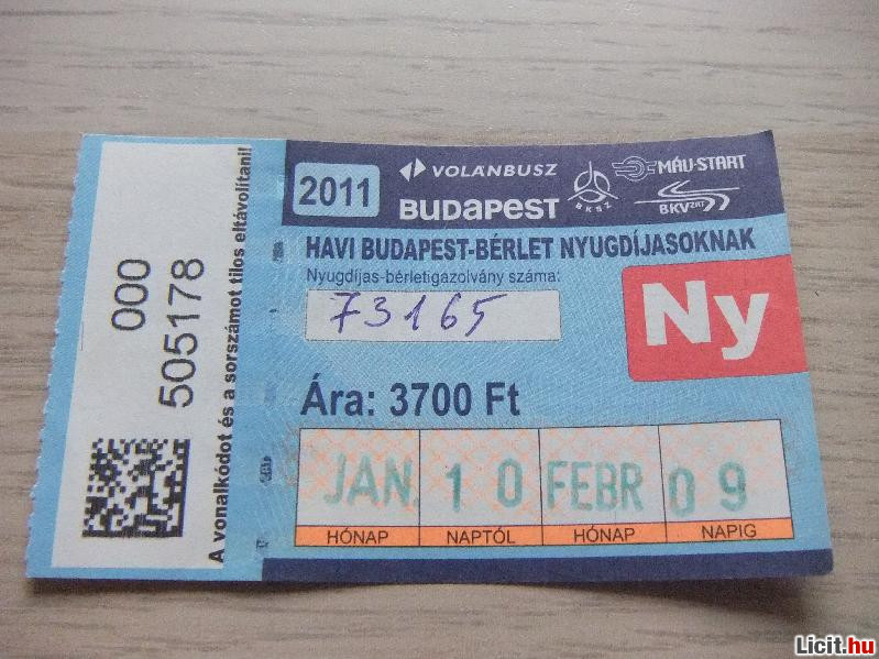 Havi Bérlet 2011 Január | Termékkód: 1062364592 |