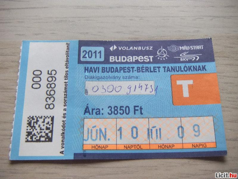 Havi Bérlet 2011 Junius | Termékkód: 1062364604 |