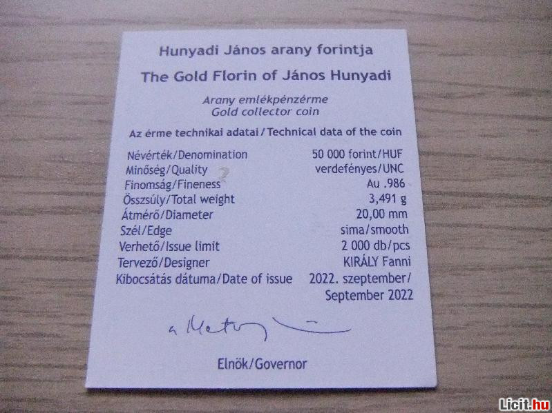 Hunyadi János Aranyforintja 50.000 Ft Aranyérem 3.491 gr | Termékkód: 1062364294 |