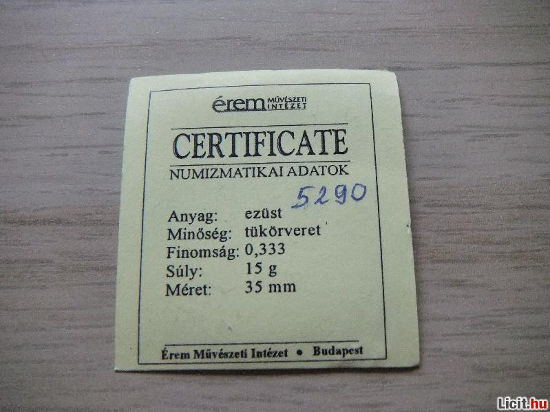 15 gr 35 mm és 0.333 Finomságú Ezüst emlékérem