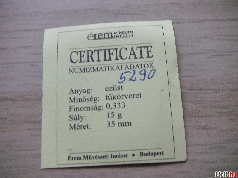 15 gr 35 mm és 0.333 Finomságú Ezüst emlékérem