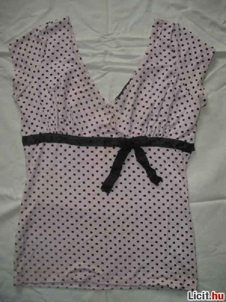 Rózsaszín alapon,fekete pöttyös felső S-M | Termékkód: 154029 |