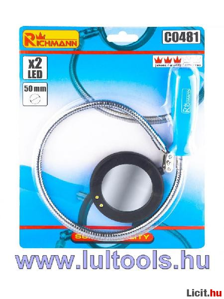 Rugalmas, kerek vizsgálótükör LED-es megvilágítással, 50 mm átmérőjű.