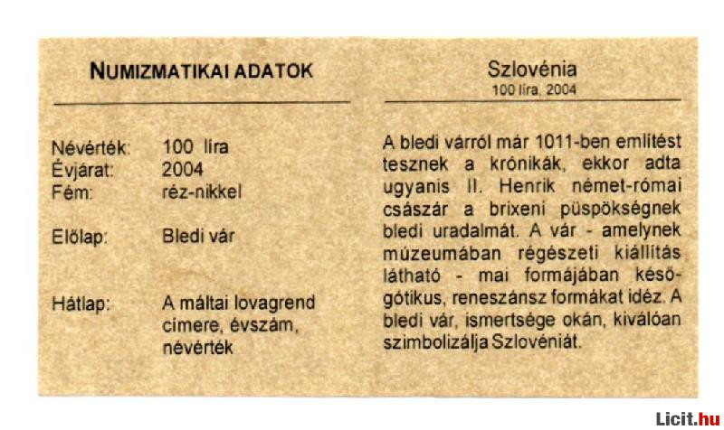 | 100 Lira Szlovénia Egyesült Európa zárt Kapszulában | Termékkód: 1062368251 |